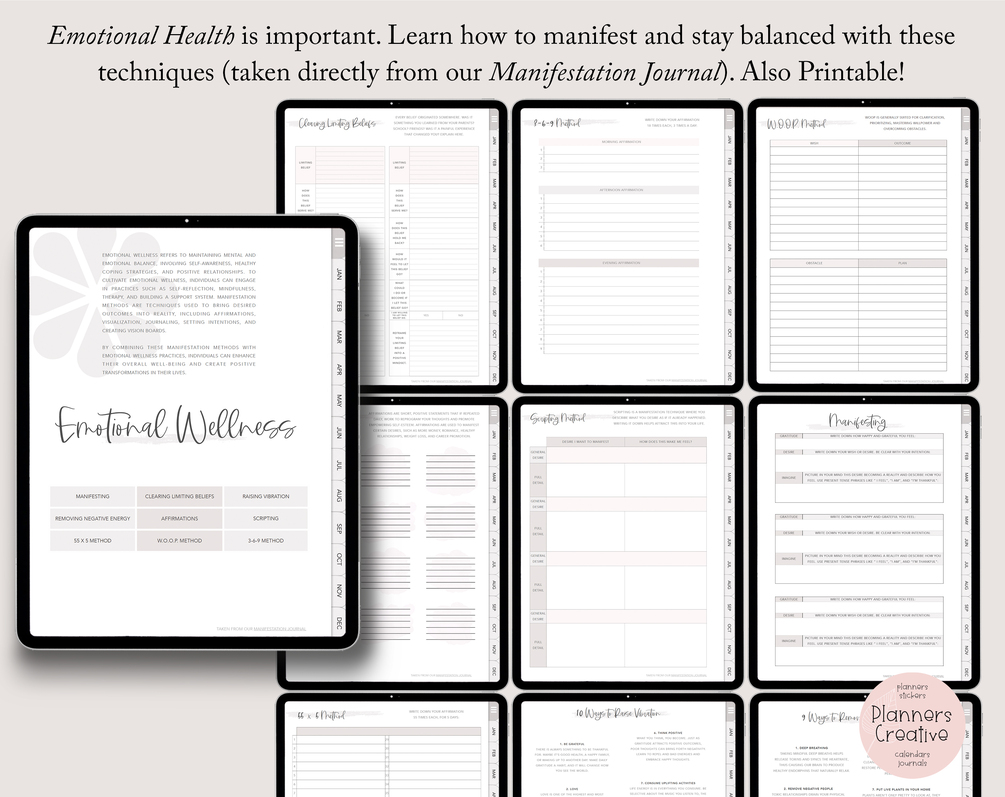 Includes an Emotional Wellness section, taken directly from our bestselling Manifestation Journal - https://www.etsy.com/listing/1451755603/digital-journal-for-manifestation-law-of