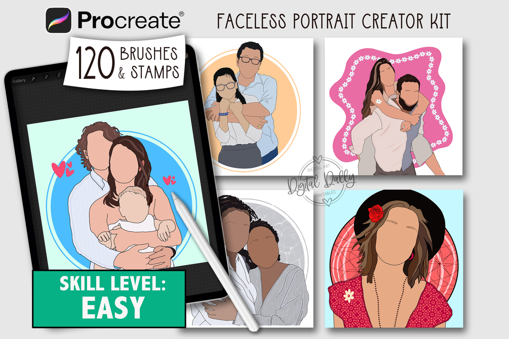 Procreate Faceless Portrait Creator Kit - 120 brushes and stamps