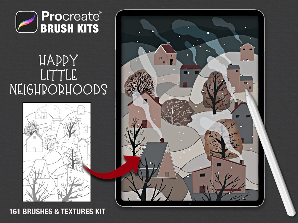 Procreate Happy Little Neighborhoods Brush Kit - 161 Brushes
