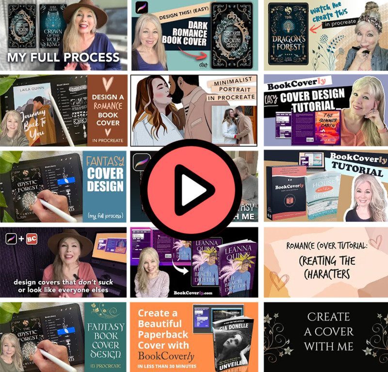 I wrote The Book Cover Design Studio book to share my complete process — and bundled it with tutorials, editable templates, Procreate brushsets, and full resell rights so you can start a creative business of your own.