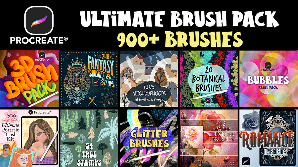 Our ULTIMATE Procreate Brush Bundle - over 900 brushes in 10 of our bestselling brushsets.